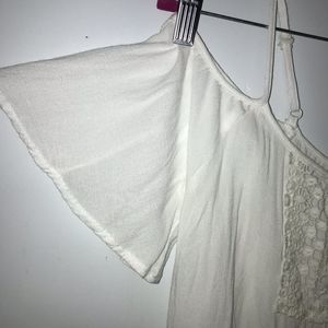 This lightweight white crepe cold shoulder shirt is perfect for summer!