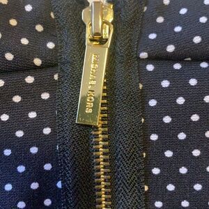 Cute Michael Kors skater skirt size 2. Black and white polka dot. 95% polyester and 5% spandex. Length is approximately 17 inches. No flaws.