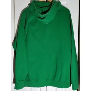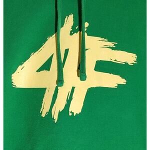 This green XL hoodie from the brand OTF features a drawstring closure, long sleeves, and a hood with the logo accents. Made of fleece fabric, this pullover style hoodie is designed with a hip hop theme in collaboration with LIL BABY and LIL DURK, representing 4PF and 4TF respectively. Ideal for activities like walking and basketball, this hoodie offers a comfortable and stylish option for men's activewear.