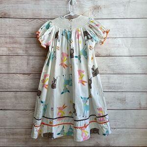 BEAUTIFULLY SMOCKED WITH EMBROIDERED DEER AND RABBIT