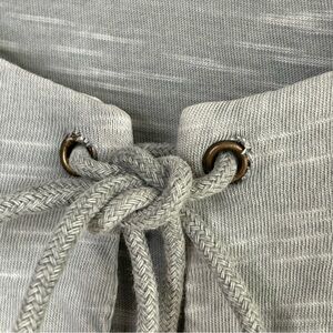 Beautiful short dress—minimalist but with delicate feminine boho details including eyelet ruffle embroidered flutter trim "sleeves" and a tie in the front you can tie into a bow or wear open.