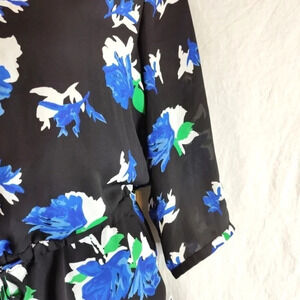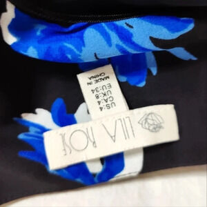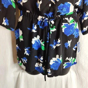 Adorable classy Lila Rose Romper new with tags. Black background on flowy material, drawstring waist, 3/4 Sleeves, functional little buttons, shorts, blue flowers. OMG so cute.