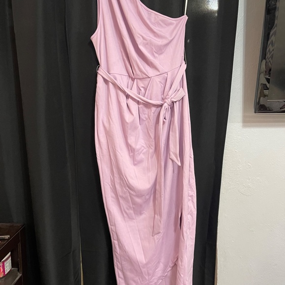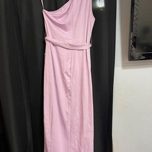 LILAC MEDIUM-LONG DRESS WITH ONE SHOULDER IN SIZE L, PERFEC FOR A WEDDING GUEST OR COCKTAIL PARTY.