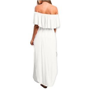 LILBETTER Womens Off The Shoulder Ruffle Party Dresses Side Split Beach Maxi Dress
