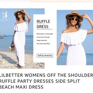 LILBETTER Womens Off The Shoulder Ruffle Party Dresses Side Split Beach Maxi Dre