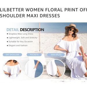 3、Side split design of this off shoulder maxi dress shows all your advantages.It makes you look very sexy and elegant. And split up the sides for your legs is easy to walk in.
