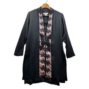 LILI BUTLER Y2K Vintage Black & Rose Embroidered 100% Silk Opera Jacket – Size S