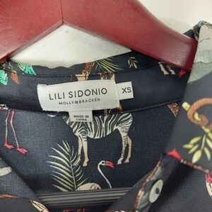 LILI SIDONIO Molly Bracken Safari Animal Print Polyester Black Blouse Jacket XS.