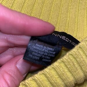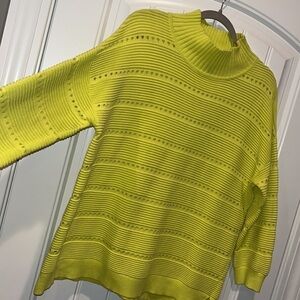 LILIYA Knit Lace Hole neon yellow mock neck Pullover French Connection size M