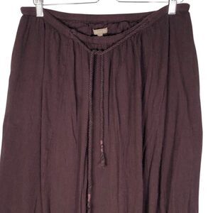 LILLA P MIDI Crinkle Skirt Purple Large Lined Drawstring Waist 100% Cotton