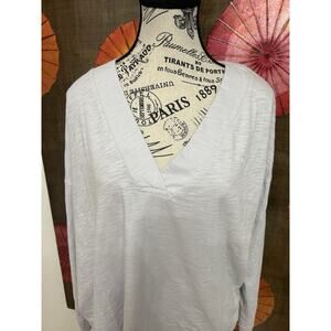 LILLA P White V-Neck Pullover Sweatshirt Athleisure Soft Casual Size L