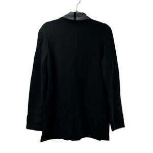 The Lilla P Women's Medium Easy Sweater Jacket Cardigan Bottom is a versatile and stylish piece perfect for autumn and winter. Made from a comfortable blend of rayon, cotton, and modal, this black cardigan features a solid pattern and long sleeves, making it ideal for casual or travel occasions. The knit style and regular fit ensure a cozy and flattering silhouette, while the machine washable fabric makes for easy care. Perfect for staying warm in style during the colder seasons, this cardigan from Lilla P is a must-have addition to any woman's wardrobe.