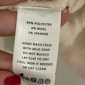89 percent polyester, 6 percent wool, 5 percent Spandex.