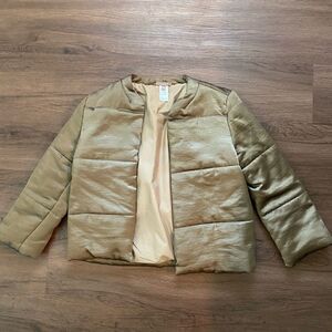 Gorgeous Lilla P sage green puffer coat. There are two spots of faint stains that are shown above- price reflects. This coat is so pretty and perfect for fall
