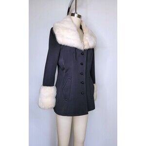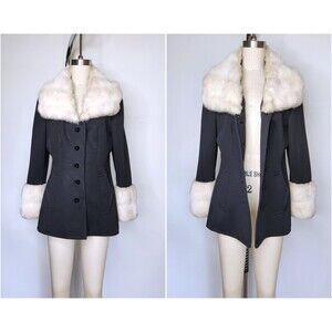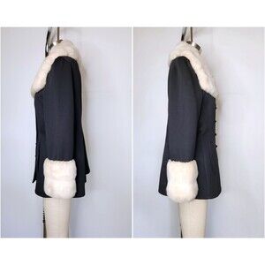 LILLI ANN Knit Black Blazer Jacket with Faux FUR Collar & Cuffs - 60s 70s S M