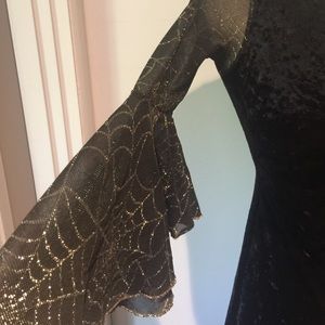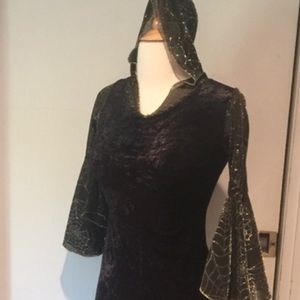 Girls velvet spiderella costume with gold sparkling detail on sleeves and hood.