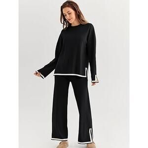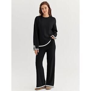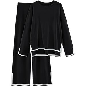 LILLUSORY Women Fall 2 Piece Lounge Set Outfits Sweatsuits Long Sleeve Sweater Tops Wide Leg Pants 2025 Black L. These womens knit 2 piece outfits sets can be worn as a set, or as separates. makes you have a better wearing experience.