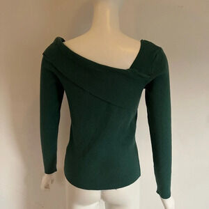 LILLUSORY Womens Rib Knit Sweaters One Shoulder Pullover Top Sweater Green Sz S