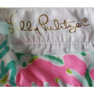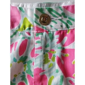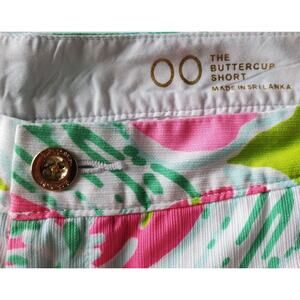LILLY PULITZER Women's Size 00 Buttercup Shorts - Scalloped, Zipper & Gold Logo Button, Side Pockets, Back Pockets, Pink, Aqua, Green, White, 100% Cotton