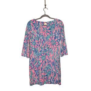 LILLY PULITZER $128 3/4 Sleeve Bay Shift Dress Tiki Pink Blue XS