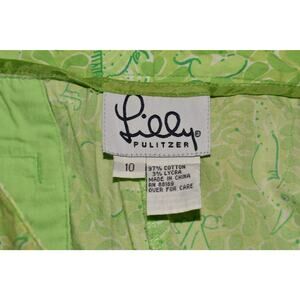These Lilly Pulitzer cotton capri pants showcase a playful green zoo animal print, blending vibrant charm with effortless style. Made from lightweight and breathable cotton, these capris are perfect for warm-weather outings or leisurely activities. The cropped design enhances a relaxed yet polished look, while the whimsical print adds a fun, unique touch that stands out in any setting. Pair them with a simple blouse or a coordinating top for a cheerful and stylish ensemble that captures the lively essence of the Lilly Pulitzer brand. A delightful addition to any wardrobe. Hook-and-bar closure; zip fly; pockets.