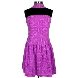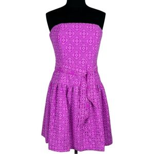 LILLY PULITZER AKELA ORCHID OASIS DIAMOND LEAF EYELET DROP WAIST MINI DRESS