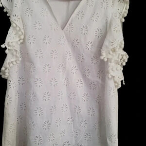 LILLY PULITZER ASTARA PALM TREE EYELET BLOUSE, SIZE SMALL, IN EXCELLENT PRE OWNED CONDITION