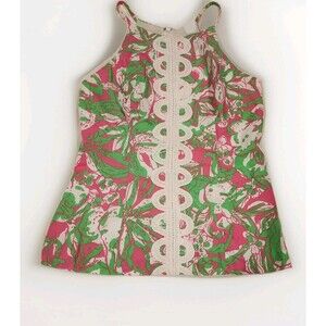 LILLY PULITZER Annabelle Floral Halter Top Tank Women's 2 Pink/Green Resortwear