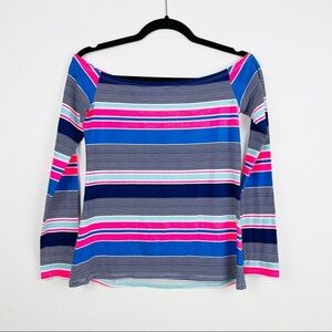LILLY PULITZER Audelia Off the Shoulder Top True Blue Kaleidoscope Jungle Stripe, Size XS, NWOT!