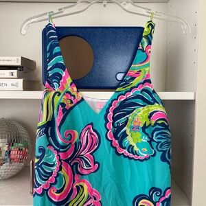 LILLY PULITZER Bailey Sea Blue Private Island Print Silk Dress