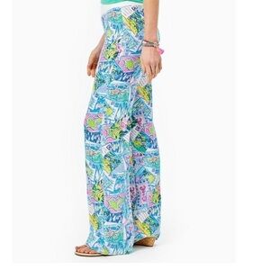 LILLY PULITZER Beach Palazzo Pull On Linen Pants Pop Up Wish You Were Here Size XS NEW