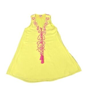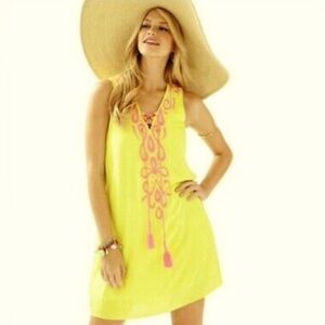 LILLY PULITZER Bethany Sweet Tarty Yellow Pink Embroidered Sleeveless Dress