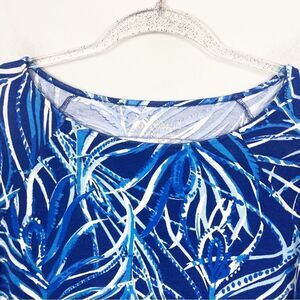 Pretty shirt by Lilly Pulitzer. Scoop neckline. 3/4 length long flare sleeve with little white cutout trim detail. Blue leaf style stripe print - looks oceanic. Maybhe thr Fontaine top. Great condition! Womens size extra small (XSmall).