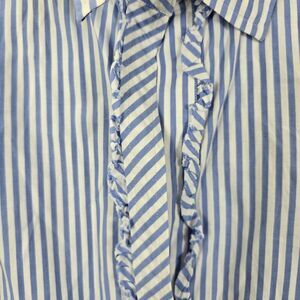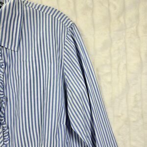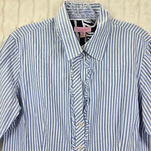 LILLY PULITZER Blue & White Striped Button Down Ruffle Shirt Blouse 10