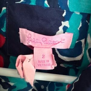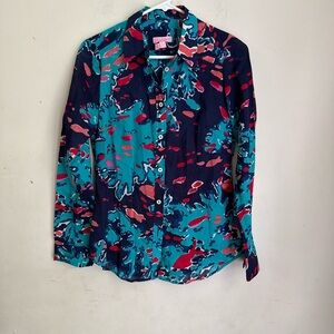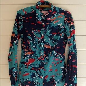 LILLY PULITZER Button Down Blouse Lightweight Cotton Turquoise Sz 2 Casual