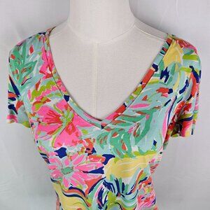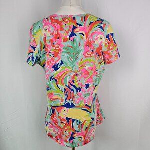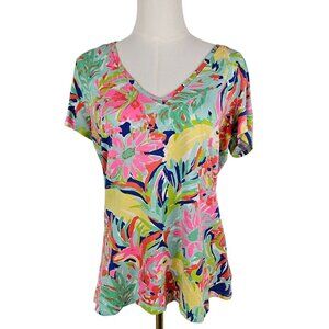 Lilly Pulitzer Floral V-Neck Short Sleeve Top Multicolor Tropical Large