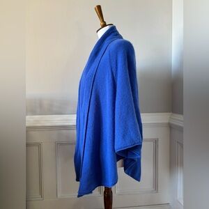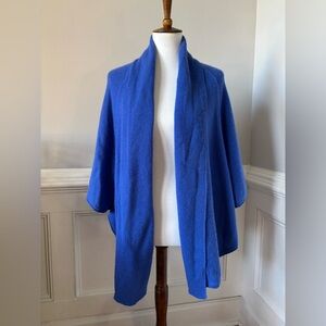 Gently used condition! Oversized poncho-style cardigan sweater. Super soft and cozy cashmere fabric. Vibrant blue color.