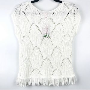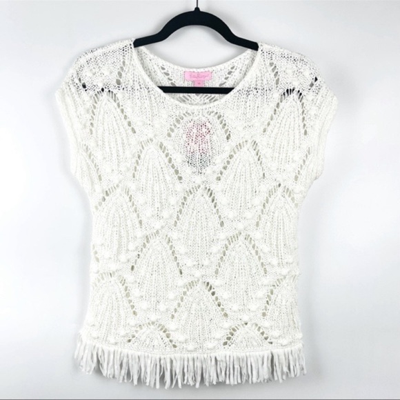 Gorgeous crochet cap sleeve Lilly Pulitzer top with soft fringe detailing at the hem. Love!