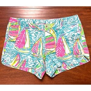 LILLY PULITZER Cotton Sailboat Print Mid Rise Colorful Nautical Adie Shorts 4