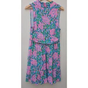 LILLY PULITZER Dress Annalise V-Neck Frenchy Blue Turtley In Love Size L NWOT