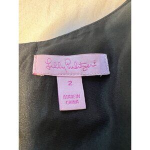 This Lilly Pulitzer dress in size 2 is a classic and modern black sheath dress perfect for formal events, weddings, parties, or even business functions. The dress features a sleeveless design with a round neckline, zipper closure, and a stylish eyelet bow accent. Made from a comfortable cotton blend fabric with a lace texture, this short dress is lined for added comfort. Perfect for the summer, fall, or spring seasons, this dress is a versatile piece that can be dressed up or down for any occasion.