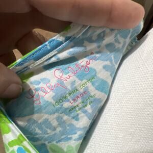 LILLY PULITZER ELIZA Sz LARGE Spa Blue Lets Cha Cha Pima Cotton Shirt Dress EXC