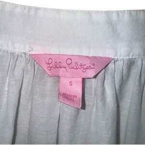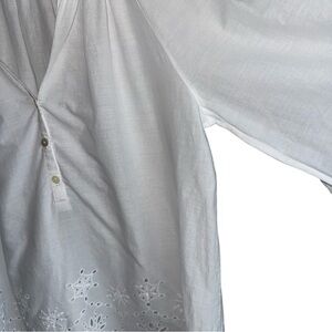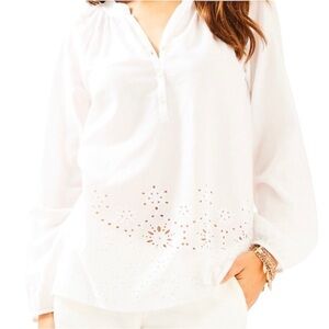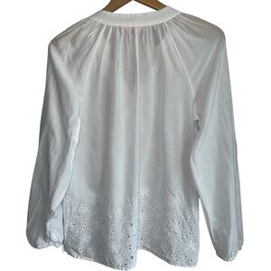 LILLY PULITZER Elsa Eyelet Top | White Long Sleeve V-Neck Cotton Blouse | Small