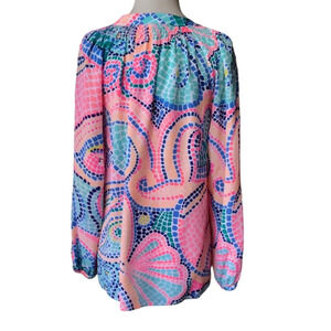 LILLY PULITZER Elsa Silk Blouse S Tile Wave Mosaic Women's Top