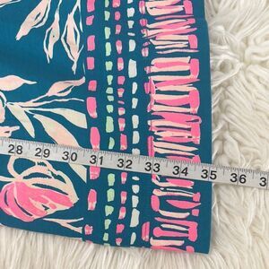 Lilly Pulitzer This stylish floral print dress features a vibrant blue and pink design. Perfect for any occasion, it offers a comfortable fit and eye-catching colors.