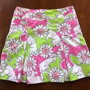 LILLY PULITZER Floral Sun Cat Print Pleated Cotton Lined Skirt 8