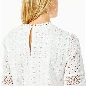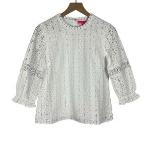 LILLY PULITZER Jordana Cotton Eyelet Blouse Top White Size 2 Resortwear Vacation