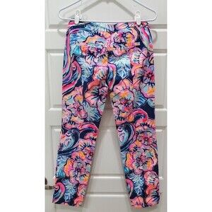 LILLY PULITZER KELLY SKINNY ANKLE PANTS NAVY BLUE BRIGHT PINK FLORAL WOMEN 0