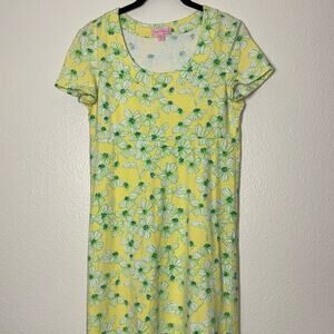 LILLY PULITZER Kelsea Dress Women's XS Yellow Green Dogwood pattern Stretch Knit
