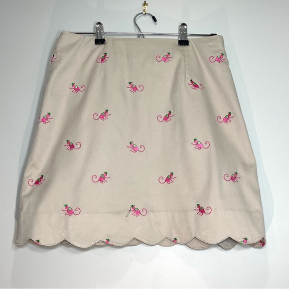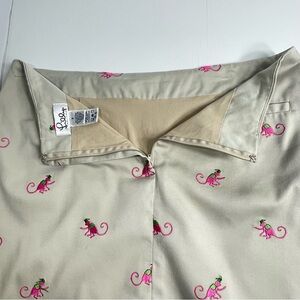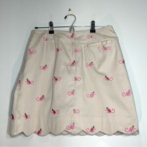 LILLY PULITZER Khaki Skort Pink Monkey Embriodered Scalloped Hem Stretch Size 2